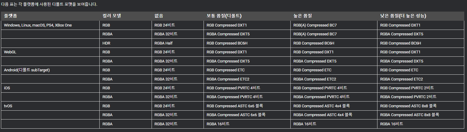 | [Unity] 텍스처 압축 포맷 (0) | 2023.01.16 |